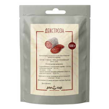 Применение: декстрозу используют, чтобы улучшить вкус готовых колбас. Она усиливает вкусовые свойства мясного фарша. Кроме регулировки вкуса, декстроза способствует: