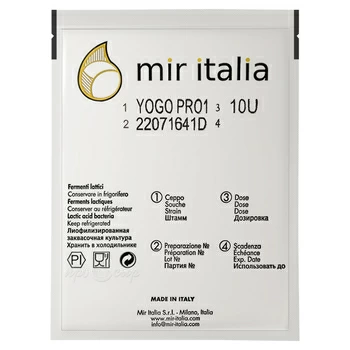 Закваска с бифидобактериями MIR Italia YOGO PRO предназначена для приготовления питьевого йогурта. За счет своего состава закваска также является ценным пробиотическим напитком.