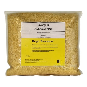 Вкус Эльзаса – это композиция на основе лука и нтурального экстракта дыма, которая удивит вас своим неповторимым вкусом и напомнит вам знаменитый эльзасский “Flamenküch” – “пирог на огне”. Гетерогенная по внешнему виду смесь состоит из мелкозернистой светло-желтой основы, инкрустированной хлопьями кремового цвета. Запах сильный, но приятный, с преобладанием дыма и лука.